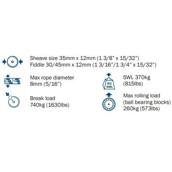 A strong, lightweight block for use on dinghies and dayboats or as lead blocks on larger craft. A comprehensive range of multiple sheave options, together with fiddles and cam cleat blocks, allows powerful, lightweight tackles to be achieved.