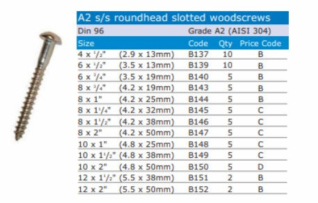 Stainless Steel Woodscrews - Countersunk or Roundhead
