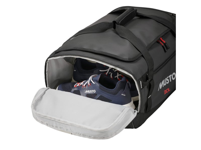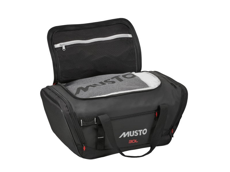 The 30L Water Resistant Duffel Bag is a compact option for weekend sailing trips or land-based adventures. Made from durable waterproof fabric with stitched seams, it offers reliable protection against spray and damp conditions. A large U-shaped opening provides easy access to the main compartment, while adaptive end pockets include a dedicated space to separate used footwear or wet kit from clean clothing. An internal mesh pocket promotes organisation. Carrying options include packable backpack straps with 3D mesh padding, sturdy webbing handles and a top carry handle for overhead stowage. External daisy chain webbing, YKK? zips and Duraflex hardware complete this versatile, hard-wearing kit bag. This duffel bag comes packed into a lightweight carry bag for easy, condensed storage when not in use. The carry bag itself can also double as a packing cube to help you better organise your belongings within the duffel. Dimensions: 54cm x 28cm x 23cm
