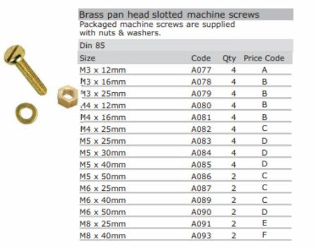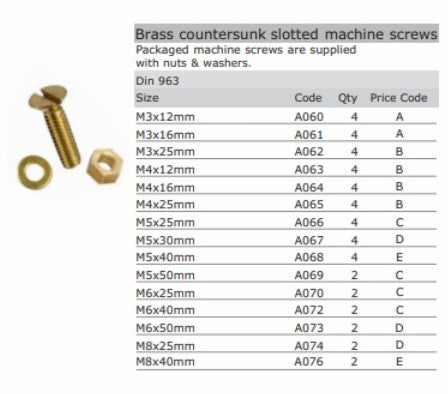 Brass Machine Screw - option of countersunk or panhead